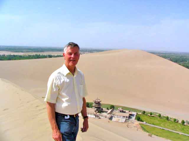 China Conference Center Telecommunications Tower in ShanghaiYu Yuan Gardens in ShanghaiThe Reclining Jade Buddha in ShanghaiJiujiang Ceramics FactoryCheque Presentation by JushiWoman Hand-Painting a Ceramic Jar in JiujiangTV Reporter After Interviewing me at YitangYitangTwo Sets of Five Locks at the Three Gorges DamFourteen Turbine on the North Side of the Three Gorges DamBridge Over the Valley on the Road From Yitang To EnshiWoman Doing Silk EmbroideryRoad From Yitang To EnshiThe Wall and Suspension Bridge At The Enshi Chieftan's PalaceWater Buffalo Ploughing the Paddy Fields Next To the Road From Enshi To WanzhouCPIC Staff Welcoming Me To Their Factory In ChongchingThe Presentation of A US$12,500 Cheque In ChingchingDrummers At A Cheque Presentation Ceremony In ChongchingThe Public Making Donations To My Trip's Charities In ChongchingBuddha Sitting On A Peacock at DanzhouThe Buddhist Sculptures of Life At DanzhouSeven Month Old Panda Which Will Become The Olympic MascotPandas Munching Bamboo At ChengduThe Great Buddha at LeshanDromedery Camels On the Road From Golmud To DunhuangThe Sand Track Leading To the Forest That Did Not ExistCamels Taking Tourists To the Mingsha Mountain and Crescent Spring From DunhuangThe Crescent Spring With Buddhist PagodaLooking Down From A Sand Dune To the Crescent Spring and Pagoda Near DunhuangThe Mingsha MountainThe Crescent Spring Pagoda Dating To the1200sMy Guide, Sher, At The Peacock Rock In The Gobi DesertThe Entrance To The Yumen Pass Near DunhuangA View of The Depression From TuikThe Caves At TuikHaving Tea With a 102 Year Old and His 18 Year Old Uigur Great Grand-daughterSher, My Guide About To Pay For Food In The People's Square, TurpanA Water Tunnel At KarezVineyards Viewed From the Emin Mosque In TurpanA Wind Farm 50km From UrumchiWild Horses At The Lake Near Yiningfarmland Leading To Open Grasslands South-West of YiningNomads On Horseback Following Their Herd